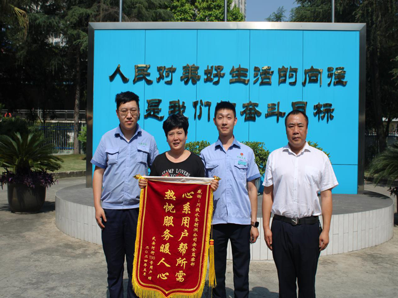 2024年5月24日,射洪水司收到武安河街130號用戶送來的“心系用戶幫所需,熱忱服務暖人心”錦旗,對公司為民辦實事、解民憂表達感激之情。